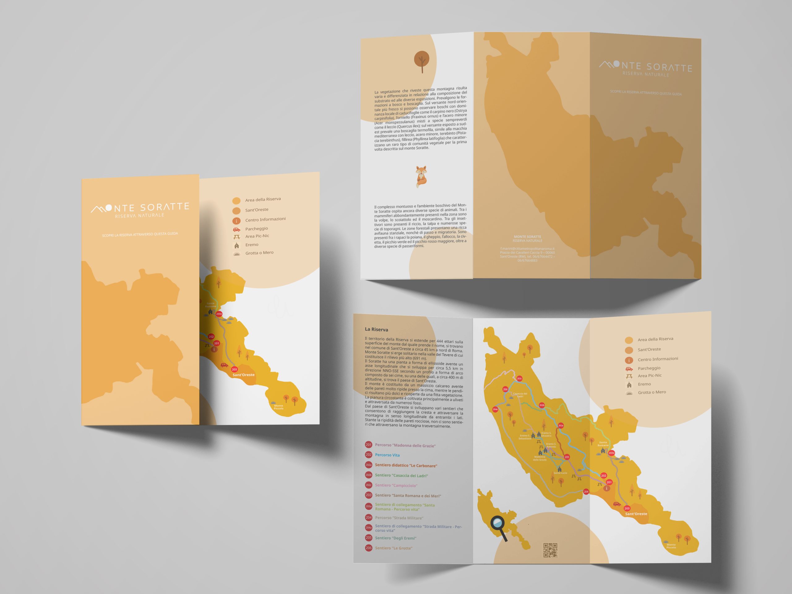 A cohesive and environmentally sensitive visual identity system that enhances the Monte Soratte Nature Reserve’s natural and cultural heritage. The logo, graphic system, wayfinding, digital platforms, and communication materials created a consistent and recognizable presence across physical and digital touchpoints, improving visitor orientation, engagement, and overall experience while respecting the landscape.